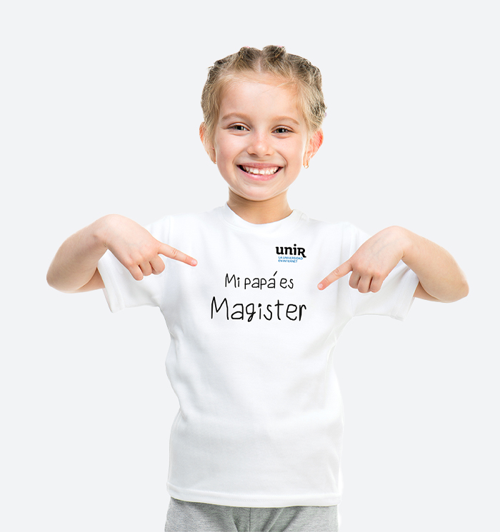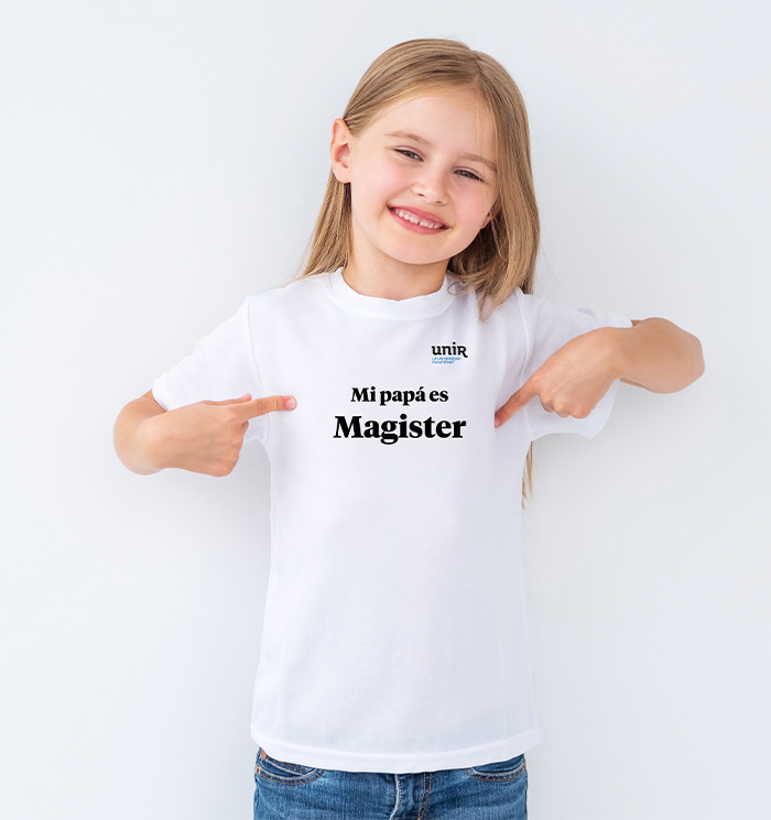 Camiseta blanca poli algodón con frase Mi Mamá es magíster ó Mi Papá es magíster